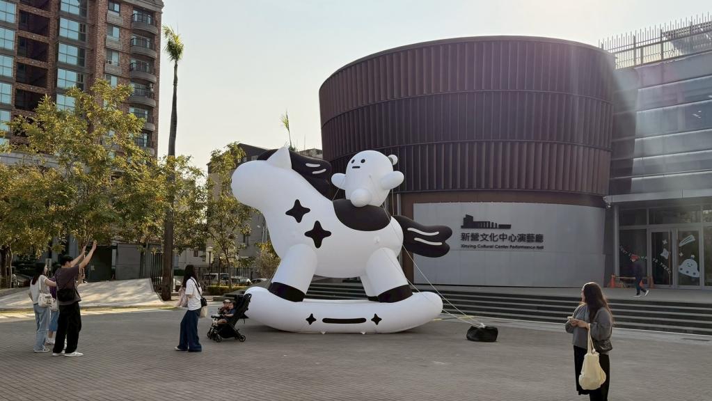 今年新營文化中心與藝術家Alan hong攜手合作,打造「2026新營Q起來—追逐心底的光 Light is always there」戶外藝術裝置展,以「小馬Q」、「星星Q」、「球球Q」等萌系角色妝點新營文化中心廣場,純白系療癒氛圍,吸引相當多民眾、遊客駐足拍照。