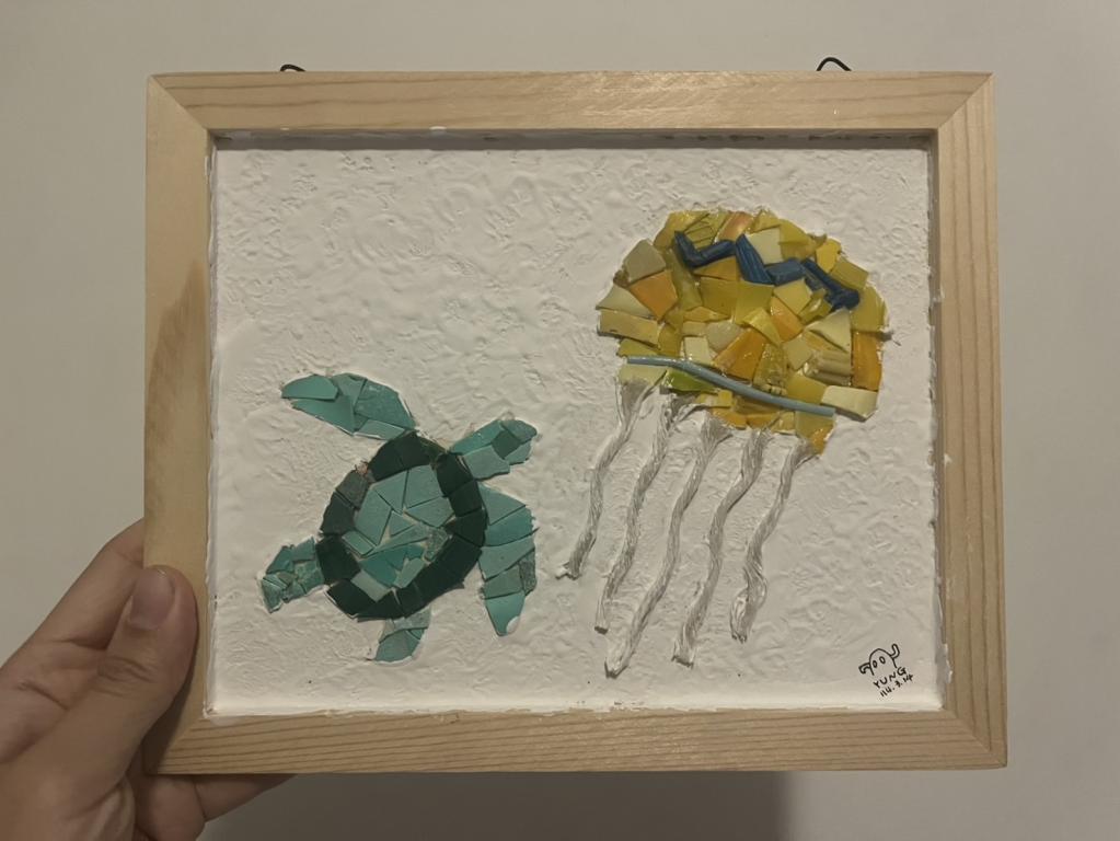 當我們撿起海灘上塑膠碎片,它們曾是瓶蓋、吸管、玩具、包裝,如今破碎無名,被海水磨平邊角;這些看似無用垃圾,卻拼貼出一幅幅關於海洋真實畫面—一隻被纏住鱟、一片被污染珊瑚礁、一隻誤食塑膠海鳥。