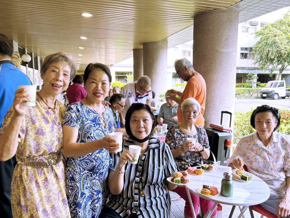 ▲八德榮家舉辦「花好月圓.銀齡畫語」油畫展開幕茶會,八德榮家油畫班成員們開心的享用茶點暢談作畫心得。(圖/八德榮家提供)