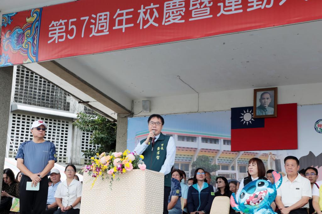 市長黃偉哲表示,感謝校長蔡明昌用心領導及家長會長吳明展支持學校發展,包括老師與家長們共同努力,打造民德國中成為臺南市最好學校之一;市府未來會持續全力協助,為同學們爭取更好環境,也祝福學校校務昌隆,期許大家把握時間,努力學習、充實自己,為自己未來開創無限可能。