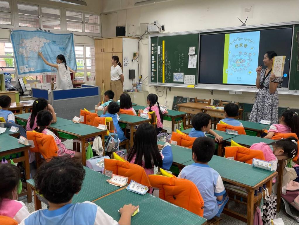 ▲竹美館前進校園推動多元母語繪本美學,認識繪本作者的國家地理位置。(圖/竹美館提供)