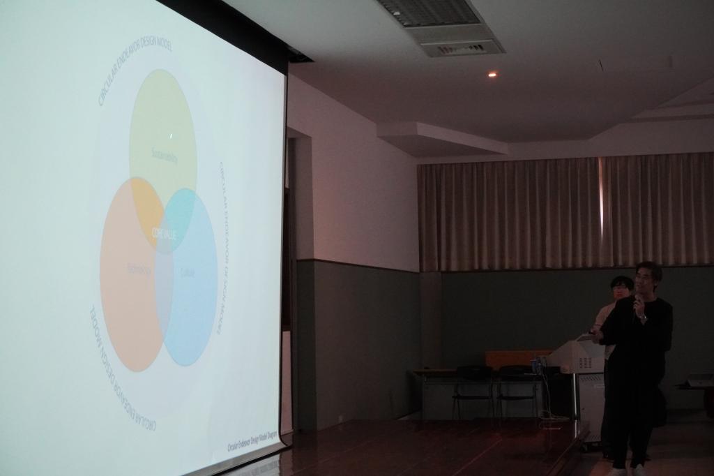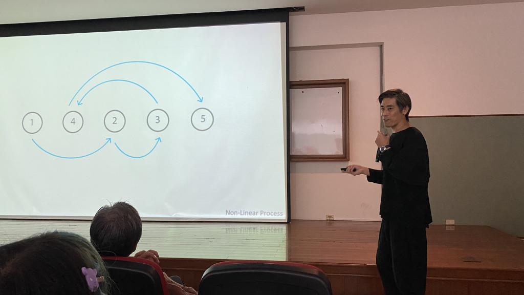 在講座中,他分享自身從「線性」到「非線性」設計流程探索,引用師承美國哥倫比亞大學建築教育觀點,強調材料與環境在實踐中皆可能帶來反饋,驅動設計不斷修正與演進;他邀請學生思考如何透過刺繡背後文化記憶與材料特性,重新定義工藝在空間敘事中角色。