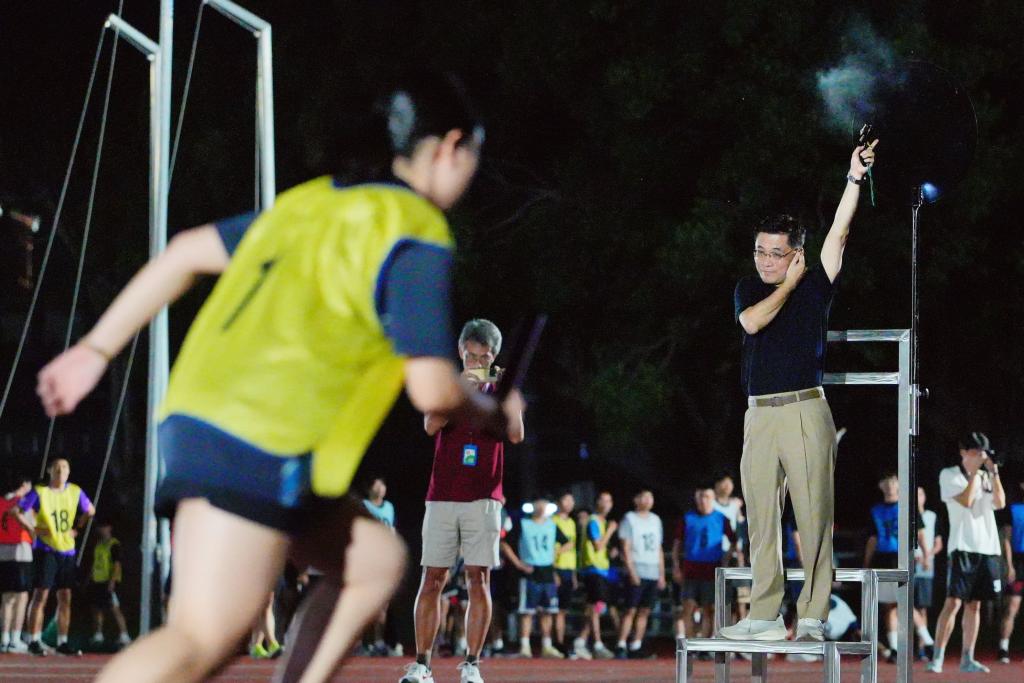 【勁報記者于郁金/臺南報導】國立成功大學「混合大隊接力賽」近日迎來最終決賽;歷經5天預賽,吸引全校超過1600名師生、80支隊伍熱情參與,最終32支隊伍(「跨域組」、「新生組」取各組前16名)脫穎而出,晉級決賽;沈孟儒校長繼預賽首日親臨現場鳴槍開賽後,再度到場為選手加油打氣並鳴槍起跑;現場氣氛沸騰、歡呼聲與加油聲此起彼落,參賽者全力衝刺,為團隊與榮耀而奔跑,展現成大人團隊精神與青春熱力,也吸引眾多周邊社區民眾前來觀賽,近700人聚集光復操場,共同感受賽事熱血與感動。