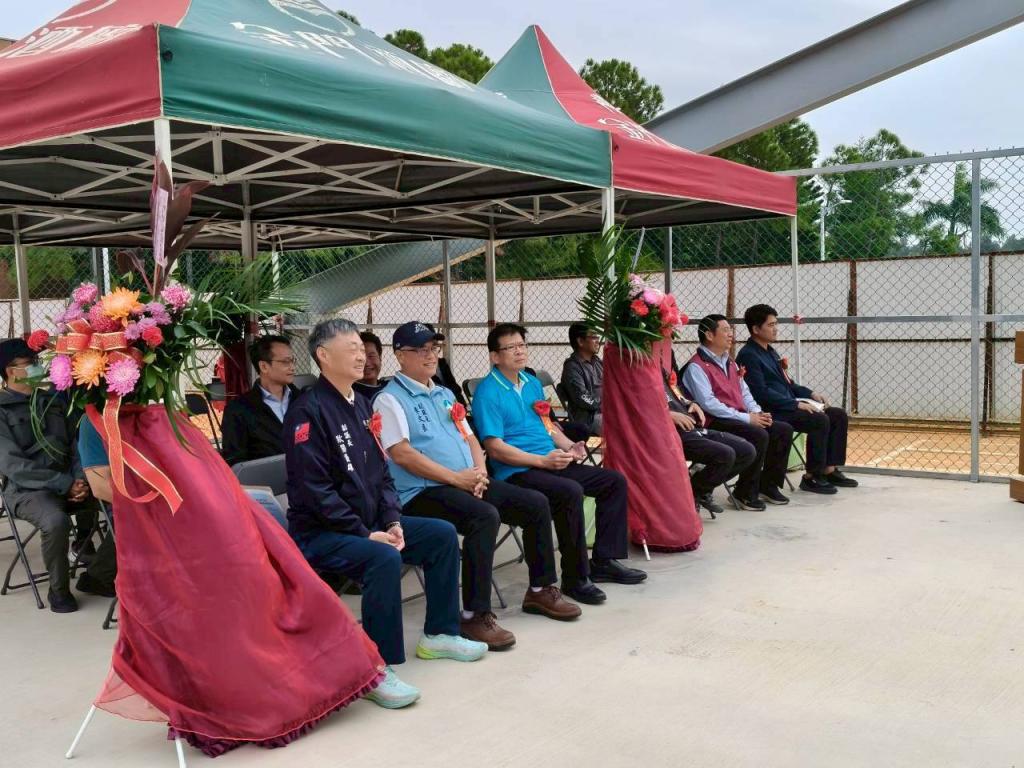 校長陳建民也致贈建校29年校慶棒球品留念,及致贈感謝狀黃奇校長及李鍾靈會長;隨後,校長也站上打擊區與副縣長李文良、副議長歐陽儀雄3人共同主持開球儀式。