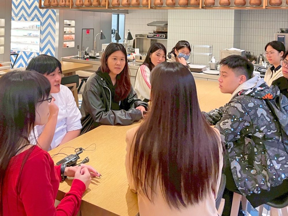 特別值得一提的是,餐旅系大四學生李智翔目前正於大阪W酒店西餐廚房實習。參訪當天,同學們看到學長在廚房內專注細膩、專業熟練的身影,深受鼓舞。李智翔學長分享:「在 W Osaka 的每一天都是挑戰與學習,這裡的標準與速度,讓我體會到專業不只是技能,更是態度與責任。」這番話成為學弟妹們立志精進的動力,也充分展現玄奘學生的實力與熱忱。