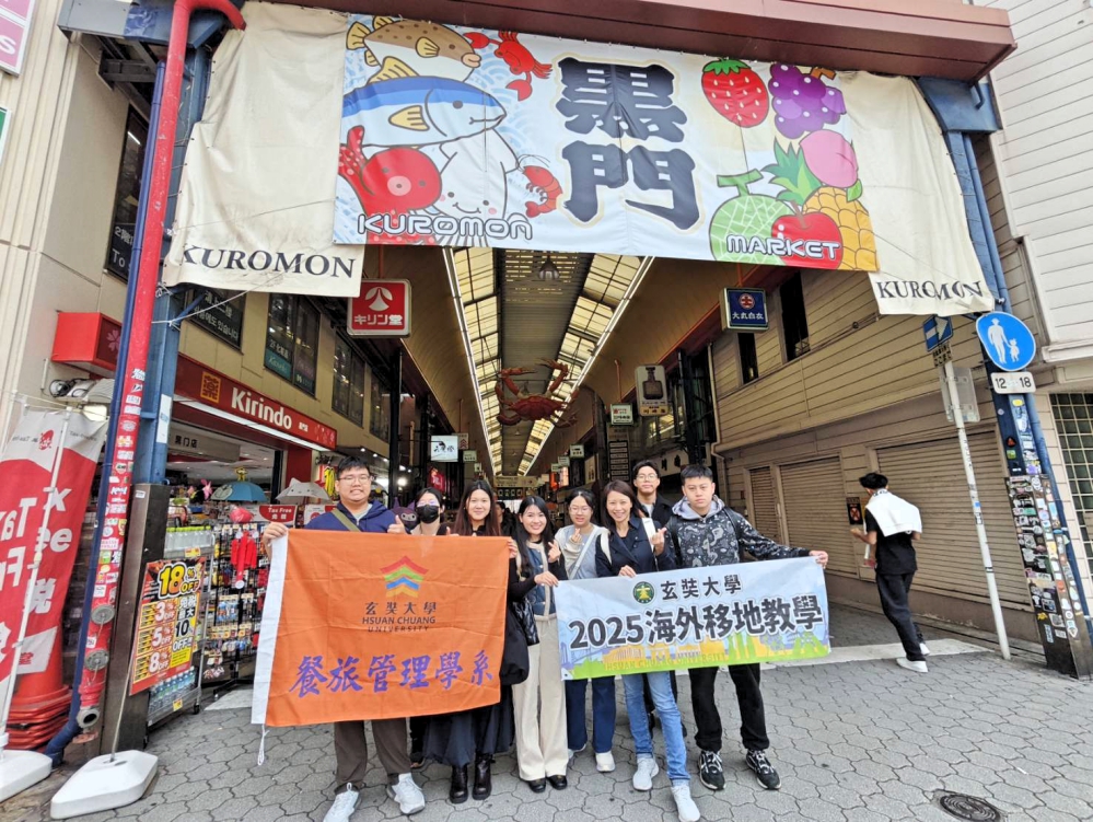 ▲玄奘大學餐旅管理學系帶領學生前往日本大阪參訪W酒店,展開為期四天的「境外移地教學」。圖係在黑門市場的文化探索活動。(圖/玄奘大學提供)