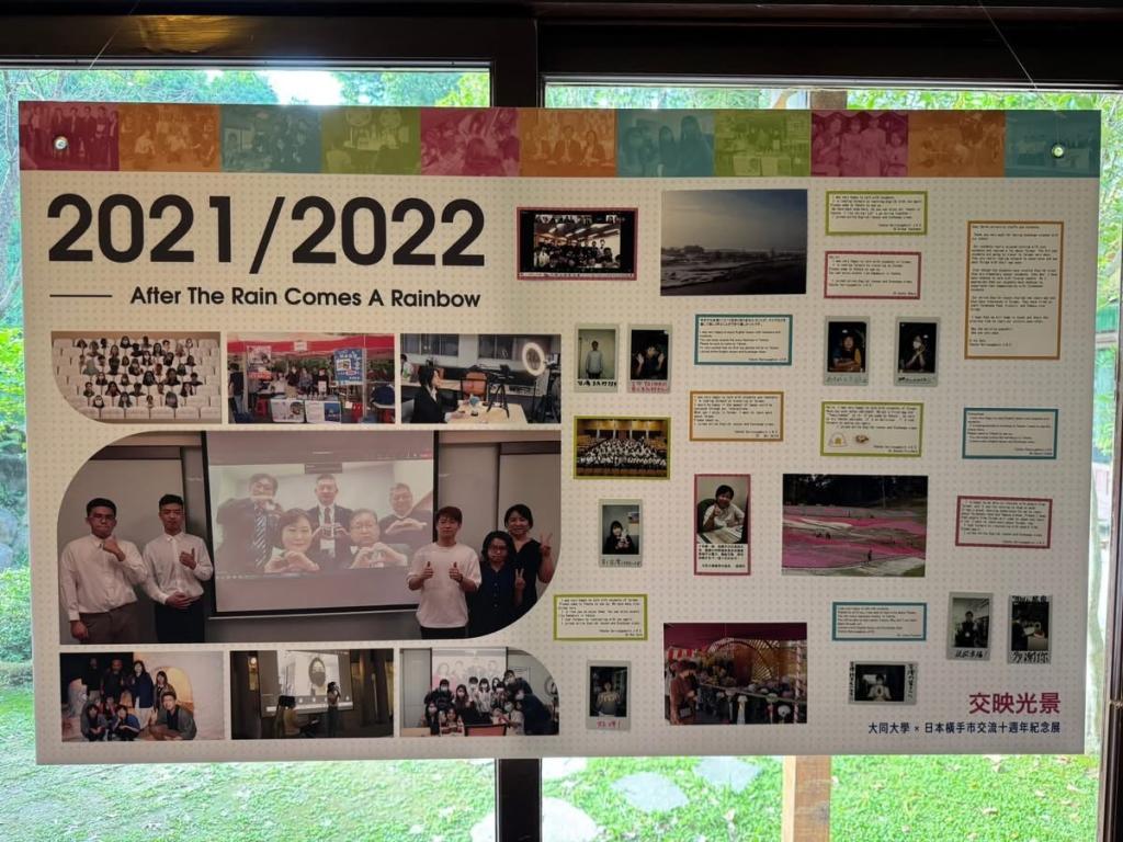 ▲校內展示的十年歷程。疫情期間,雙方仍持續以線上方式交流。(照片提供:日本秋田縣橫手市)