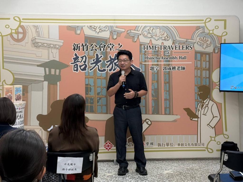 國立新竹生活美學館長葉于正表示,竹美館長期以推動「文化融入生活、生活成為美學」為使命,積極實踐文化走進生活、以教育創新方式,將傳統導覽模式發展成浸沈體驗的探索場域,在遊戲中學習認識新竹公會堂。希望透過「新竹公會堂:韶光旅人」教具優化桌遊及生成式AI技術,將百年建築的精神延伸至教育現場與藝術創作之中,培育學生的文化感知與科技素養。