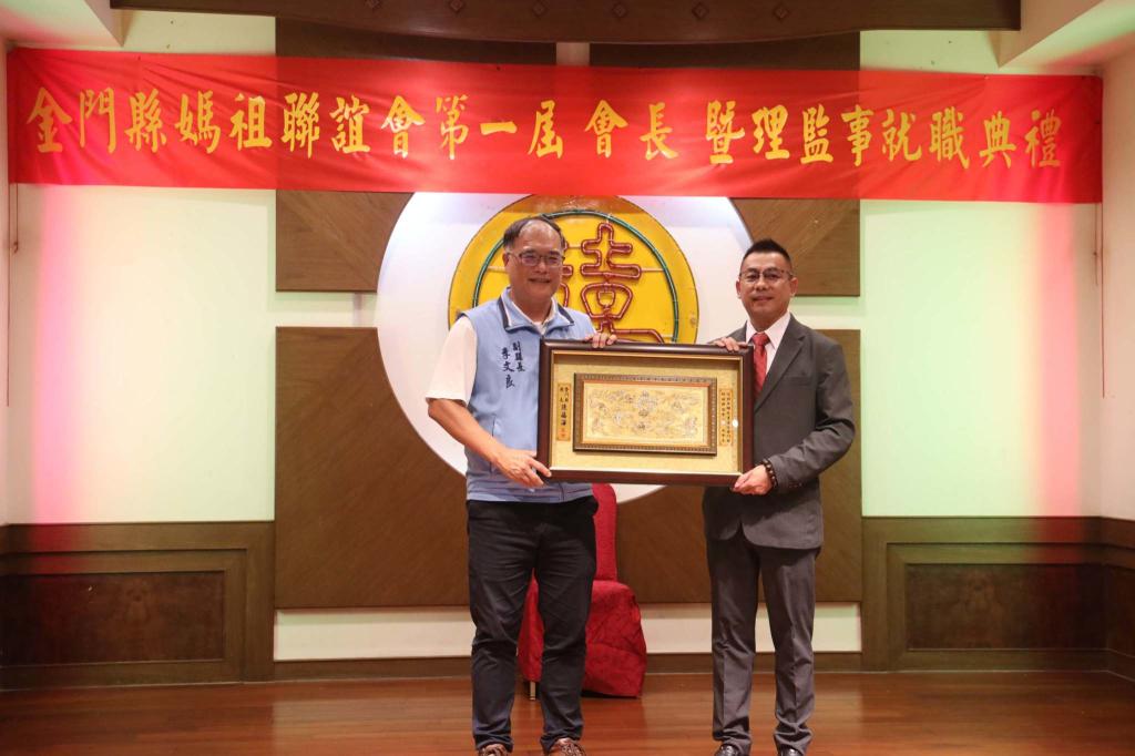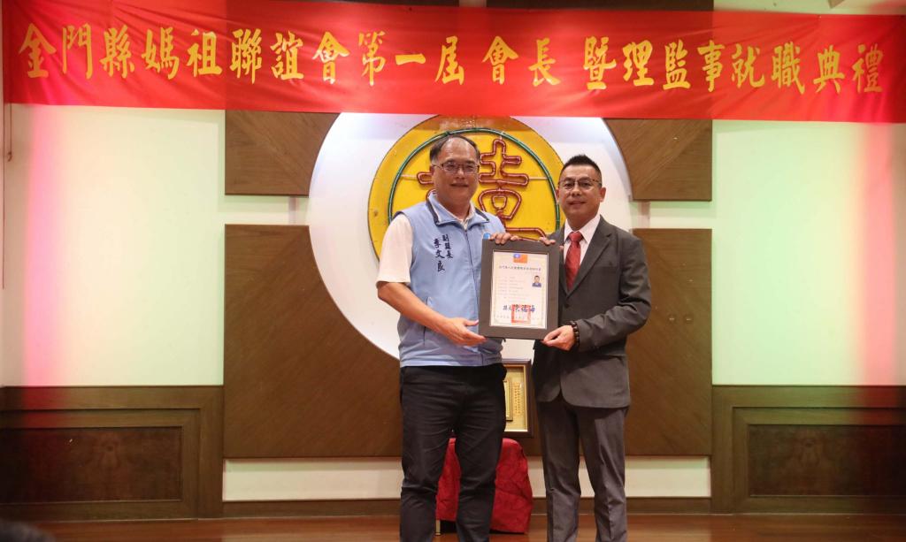 李副縣長並期許新任會長許燕輝帶領理監事團隊,結合全縣宮廟資源,深化宗教文化交流,推廣公益善舉,讓金門成為展現媽祖文化精神典範島嶼,並祝福會務昌隆、香火永續。