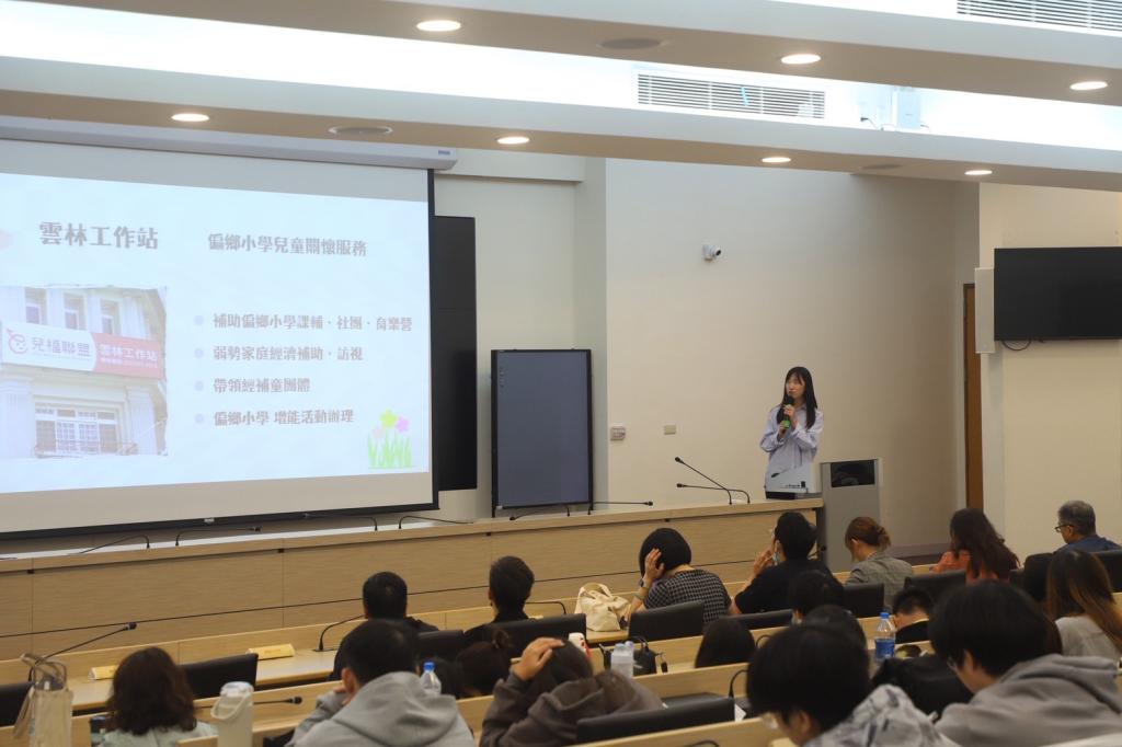 在青少年中心實習羅同學分享:「面對青少年要以真誠態度陪伴他們度過撞牆期」,在兒童福利聯盟實習蕭同學表示,自己曾在模擬會談中,從10分鐘就無話可說的窘境,逐步進步到能完整進行60分鐘對談,深刻體會到自身成長與突破。