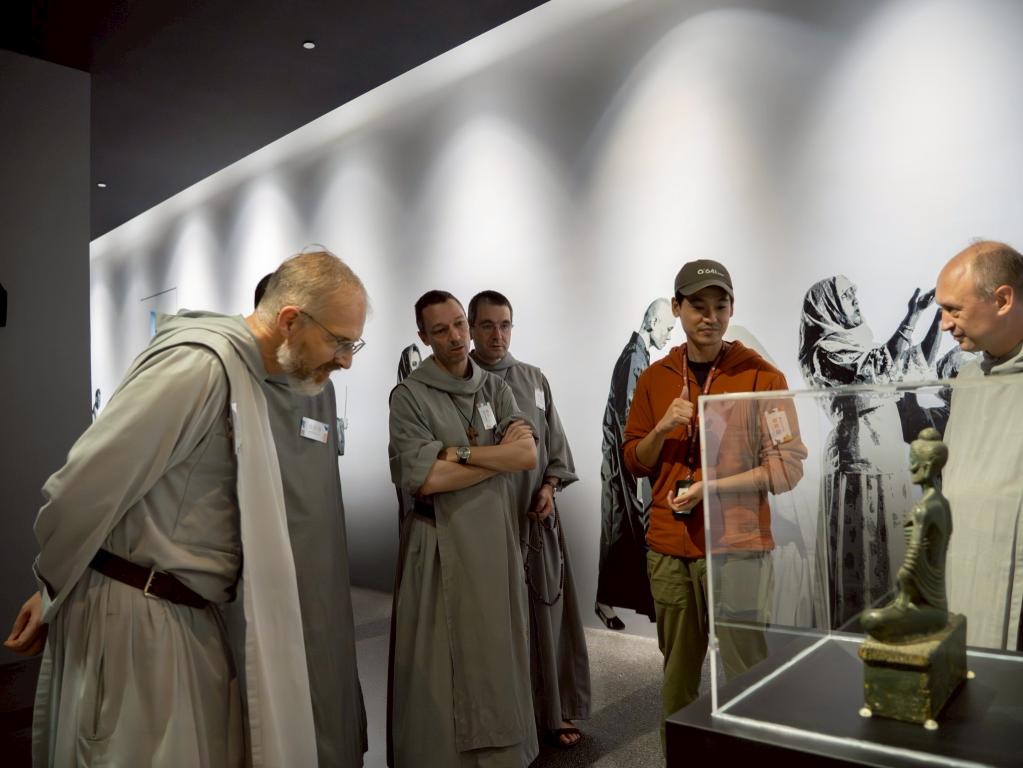 來自台南菁寮聖十字架天主堂的呂天恩神父,曾與宗博館合作推出《宗教建築之美:菁寮聖十字架天主堂》特展,也在11月9日與多位神父、修道士前來參訪。這群天主教神職人員為了《文物開窗系列特展:成為你自己的光》而來,展開基督宗教信仰與佛教世界的深度對話。