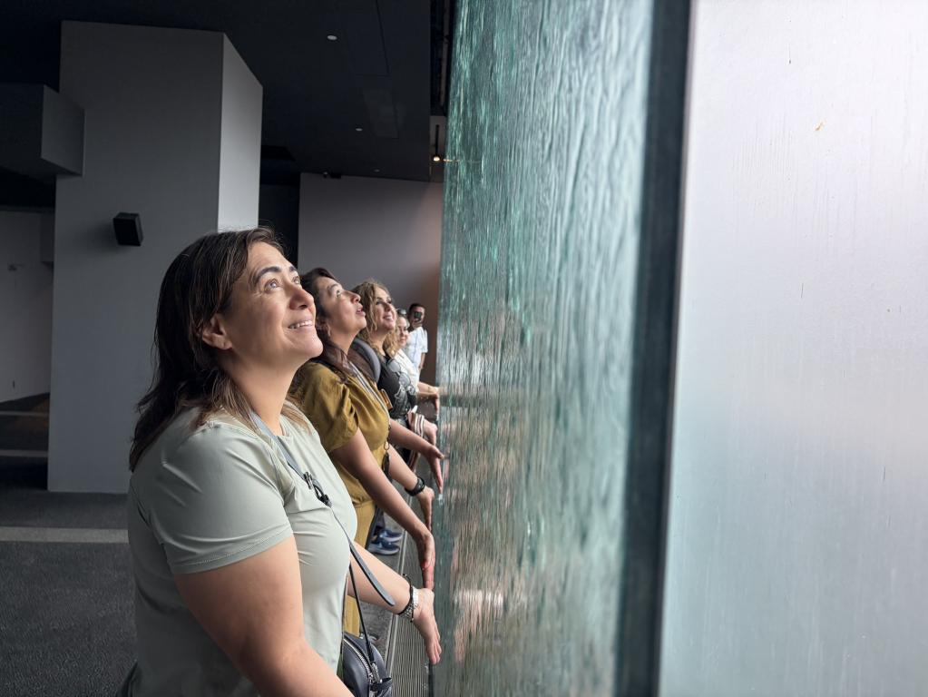 ▲參訪宗博館,在入口處的水幕牆感受宗教的洗禮。(圖/靈鷲山佛教教團提供)