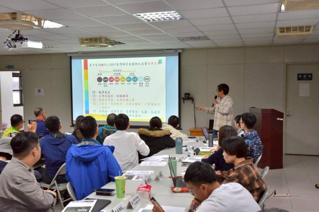 ▲桃園市環境教育資源推廣學會王派鋒老師分享水生植物保育及繁殖工作經驗。(圖/林保署新竹分署提供)