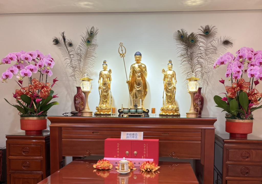 ▲王院長在樂生療養院6F建了一個佛堂,供奉藥師佛、日光遍照菩薩與月光遍照菩薩及「華嚴經」。 (圖/靈鷲山佛教教團提供)