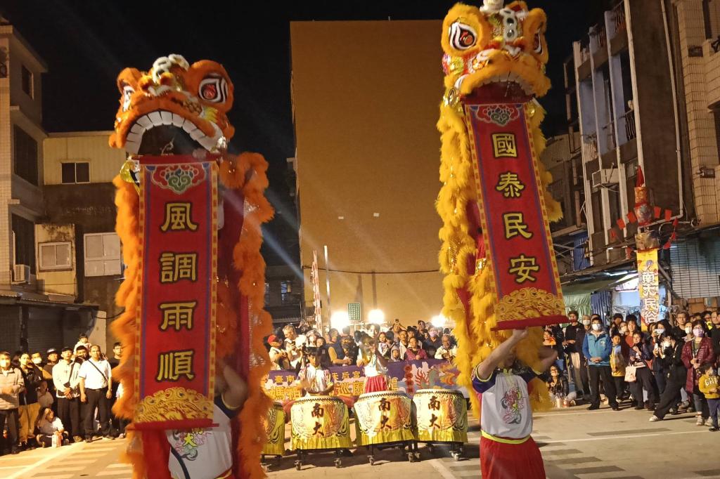 本次演出由臺南祀典大天后宮協助規劃,南大國樂社、民俗隊、熱舞社、永康國小扯鈴隊與火舞團隊共同呈現多元節目;首先登場是創立逾70年、南大歷史最悠久大成國樂社,以5首傳統曲目揭開序幕,悠揚樂聲在廟埕迴盪,吸引民眾駐足拍照;緊接著登場民俗隊以《鑼鼓喧天 祥獅獻瑞》帶來磅礡鼓陣與活靈活現舞獅,獅口叼著「風調雨順、國泰民安」吉語,展現臺灣民俗技藝節奏與氣勢,而後由熱舞社以充滿能量舞步與極佳默契帶動全場情緒,使晚會氣氛逐步推升。