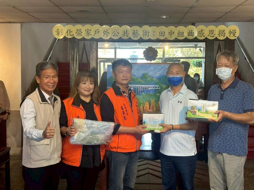 【勁報/彰化報導】彰化榮家2日為戶外公共藝術彩繪畫作「田中組曲」隆重舉辦感恩揭幔儀式,感謝熱心繪製作者,也是彰化傑出畫家曾永錫老師,及慷慨捐助經費住民林文照。