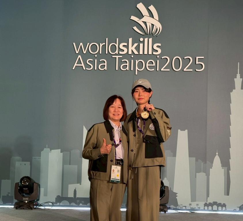 台南應用科技大學服飾設計管理系大四學生蕭妤珊,畢業於三民家商服裝科,高中時榮獲全國家事類技藝競賽服裝設計組第3名,上大學後大一參加第53屆全國技能競賽獲服裝創作組佳作,大二時獲得第54屆全國技能競賽服裝創作金牌,經過競爭激烈國手選拔賽,大四成為正選國手,在這次亞洲賽中脫穎而出,奪下服裝創作職類金牌,以卓越工藝與穩定台風獲得評審高度肯定,成功為臺灣技職教育寫下耀眼紀錄。