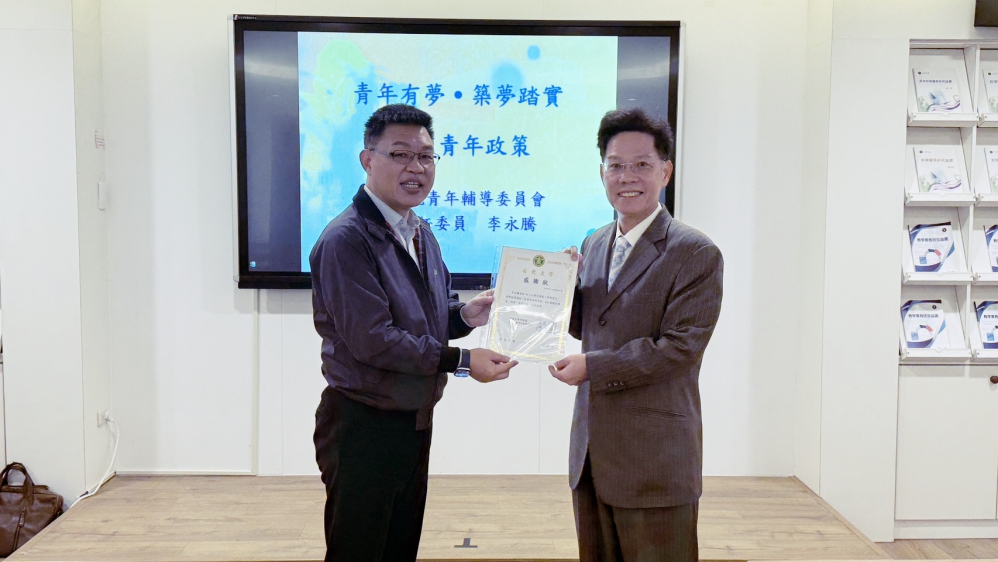 原來,李永騰主委與簡校長有一段奇妙的因緣!李永騰在演講開場時說:「民國100年至101年間,我任行政院青輔會主委時,簡校長當時參加和平志工團,獲得青年志工第一名,從我的手上拿到獎狀、獎品,沒想到14年後,第一名的青年志工成為年輕的大學校長,邀請不再年輕的主委去演講創業就業,真是美好的緣份啊!」簡校長補充說:「 當時對主委跟青年學生打成一片的熱情 活力,印象深刻!能夠從主委的手上接到獎狀,感到非常榮耀!」