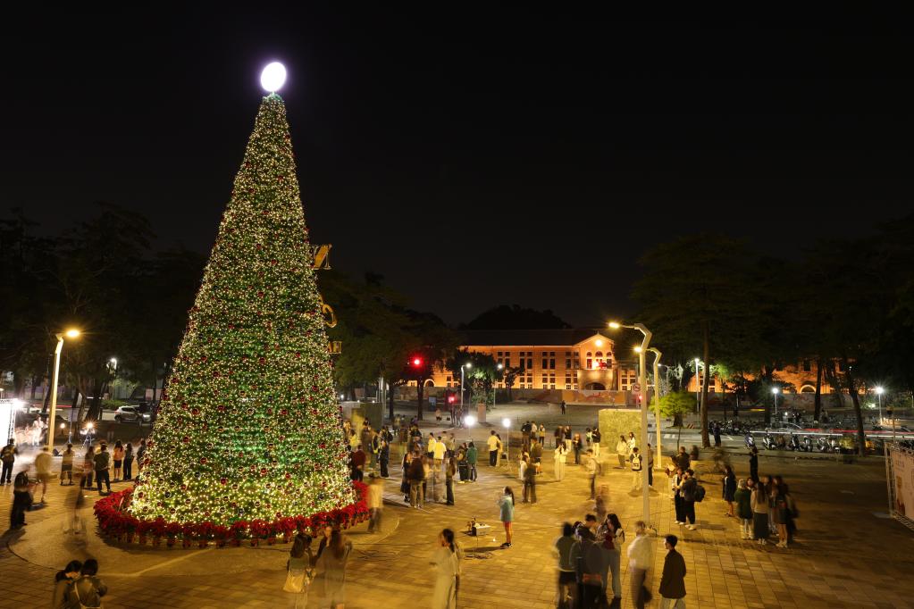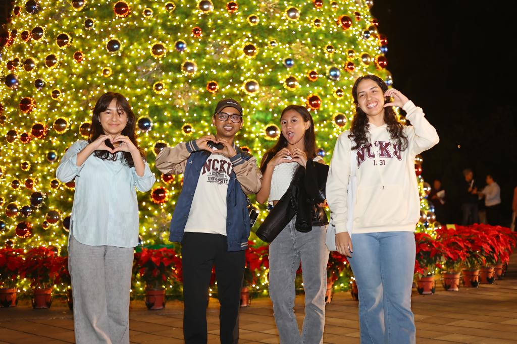 成大聖誕樹2024年首度在光復校區學生活動中心前草坪登場,是海外校友特別送給母校聖誕禮物;今(2025)年印尼校友再度慷慨贊助,讓聖誕樹華麗升級登場;連續2年都在聖誕佳節時刻捎來祝福,當中所蘊含母校之愛與成大人熱情令人備感溫暖。