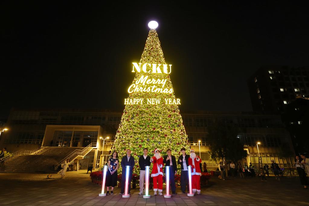成大校長沈孟儒表示,成大不僅是臺南成大,也是全臺灣成大;今年把聖誕樹搬到靠近大學路,希望在年底時節溫暖大家的心;成大校園白天、晚上各有不同美景,歡迎大家多多來成大走走。