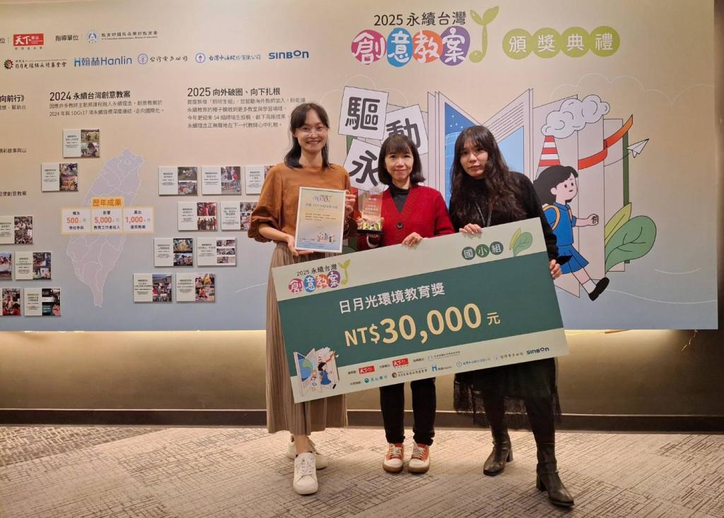 【勁報記者于郁金/臺南報導】九份子國中小教師洪若綺、張筱倩、蔡育庭與黃家緯組成教學團隊,以課程設計《海有什麼塑,未來不超塑》,從眾多作品中脫穎而出,榮獲「2025年永續台灣創意教案徵選」國小組「日月光環境教育獎」,獲頒新臺幣3萬元與獎座乙座,不僅為學校爭光,更展現教育現場實踐永續與行動力豐碩成果。