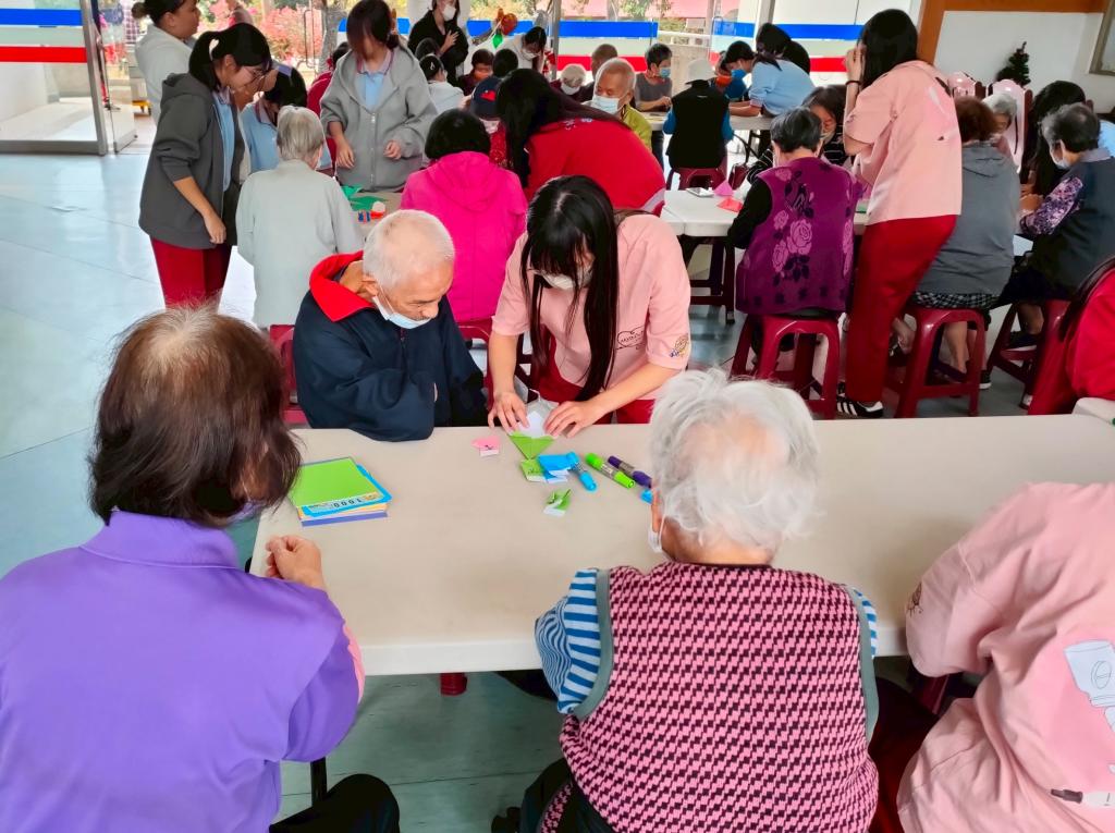 第二組同學則在長青樓進行室內團體活動,重點在於透過遊戲互動,來活絡長輩們身心靈;同學們精心設計一系列適合長輩參與益智與趣味遊戲,現場氣氛熱烈,歡聲笑語此起彼落,將長青樓變成充滿青春活力遊樂場。