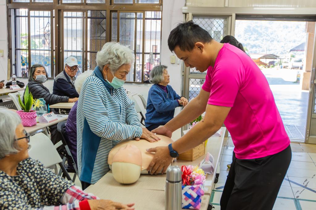 水上活動社成員親身示範,傳授「叫、叫、伸、拋、划」救溺五步驟,提升學童與長者水域安全意識。