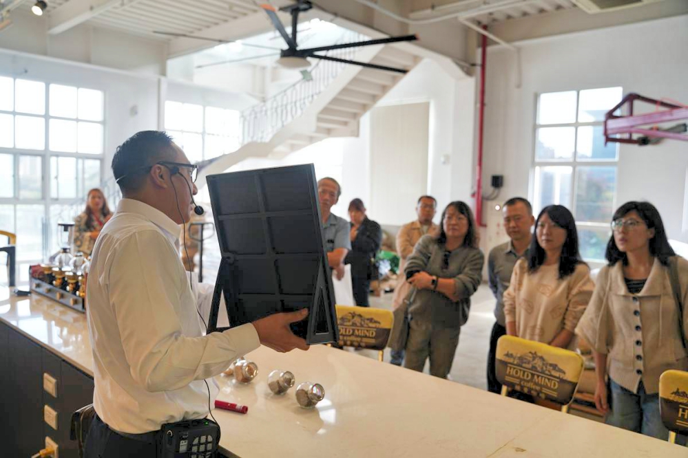 ▲活動由 ESG 咖啡觀光工廠導覽揭開序幕,赫曼咖啡總經理王進忠帶領民眾實地走入 2025 年雙十國慶指定咖啡工廠,理解永續生產的實踐過程。(圖/主辦單位提供)