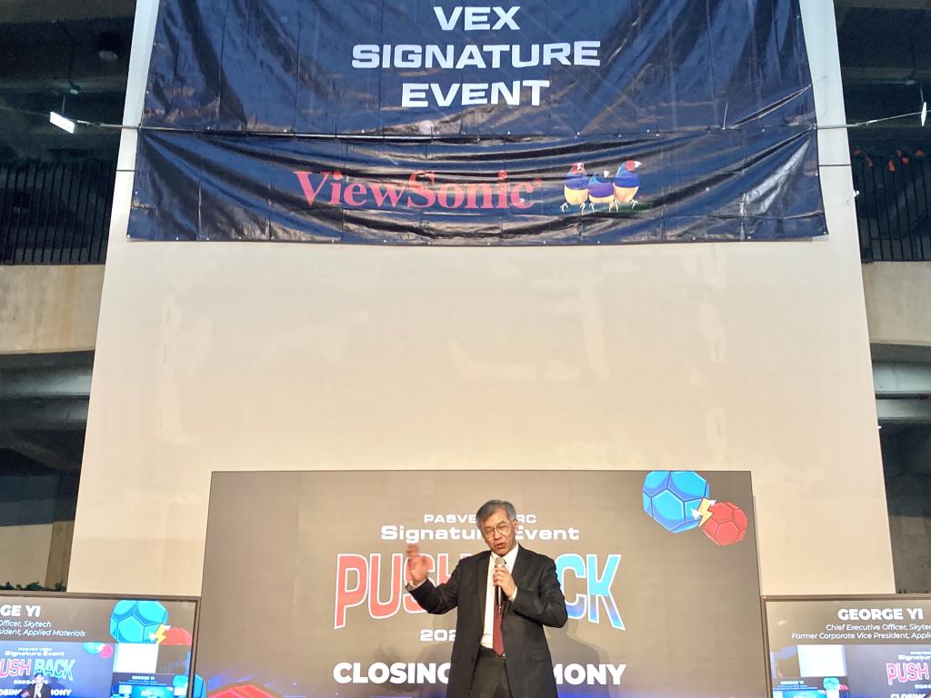 ▲由亞太美國學校(PAS)主辦的2025 PASVEX V5 機器人旗艦賽12/20圓滿謝幕,天虹科技執行長易錦良致詞勉勵參賽者。