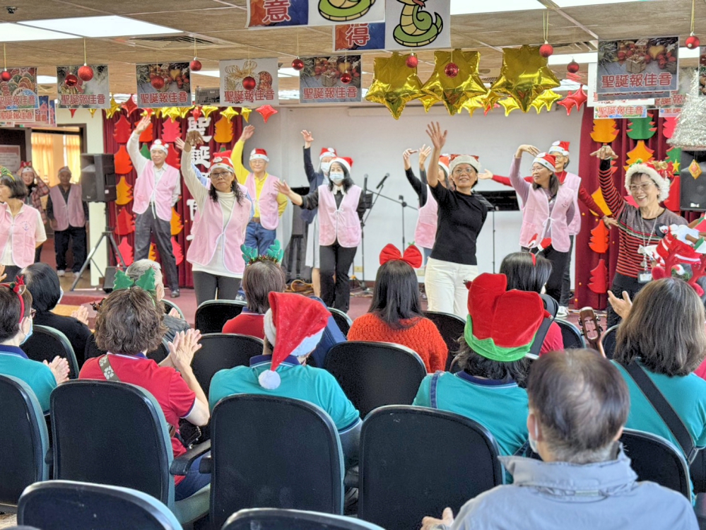 ▲八德榮家舉辦聖誕報佳音活動,邀請志工與幼兒園學童走入榮家。聖保祿醫院牧靈志工帶來生動活潑的歌舞表演,熱情的互動瞬間點燃現場氣氛,讓榮家長輩們沈浸在聖誕佳節的歡樂與活力中 。(圖/八德榮家提供)