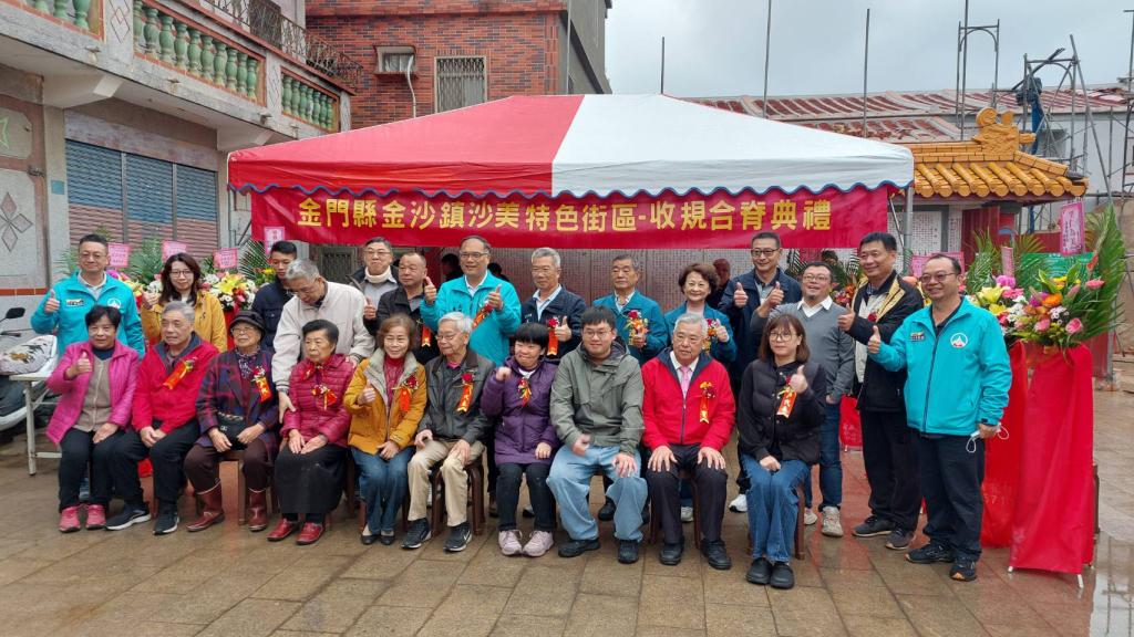 【勁報記者于郁金/金門報導】金門縣政府於25日舉辦「金沙鎮沙美特色街區建築修復再利用示範工程」收規合脊祭祀祈福典禮,副縣長李文良蒞臨主持,與會貴賓有示範工程七棟建物屋主蔡鳳雛老師等,及金沙鎮鎮長吳有家、金沙鎮民代表會張成爵副主席、蔡連進代表、呂寶玉代表、沙美萬安堂管理委員會王添泉主任委員、城鄉發展處黃儒新處長、陳勝川建築師、閎昌營造陳榮贊共同參與。