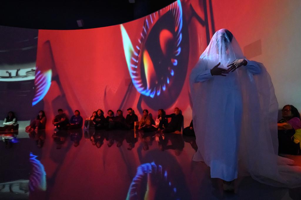 國美館長陳貺怡表示,U-108 SPACE是一個沉浸式體驗空間,提供藝術家進行實驗性的創作與融合新技術的平臺。不僅鼓勵藝術家跨界合作,還希望打破傳統媒材的限制,讓觀眾產生截然不同的體驗。陳貺怡提到,此次作品主題「結界—灶跤」與女性、母親角色有關,「作為一位擁有約30年資歷的主婦,我對灶跤(廚房)這個空間有深刻的感受。」陳貺怡指出,這件作品技術上結合AI影像生成、即時文字辨識與環繞聲響系統,以及觀眾透過書寫參與創作。作品中的「結界」概念,透過先進技術構建,將創造一種神秘且具沉浸感的空間,帶領觀眾走進一個不一樣的視覺與聽覺世界,讓人充滿好奇與期待。