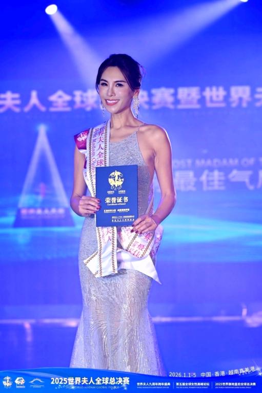 ▲2025世界夫人全球總決賽唯一雙料獎項得主台灣夫人巫鳳儀-全球最佳氣質夫人獎。
