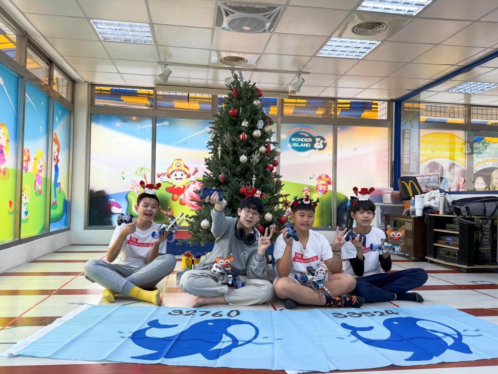 VIS 國中部機器人研究社不只溯源與產業連結,也將科技學習轉化為「看得見的影響力」。把觸腳從幼兒園推廣到偏鄉國小教育支援,再到跨國線上交流。學生讓冰冷的機器人能服務他人,創造出有溫度的公共行動。12 月底,在VIS老師Vincent帶領下,四位同學化身「聖誕老人」,駕駛自製的「麋鹿機器人」回到機器人研究社社長商泱瑞Ray的幼兒園母校進行科技推廣。同學們將看似複雜的機器人原理,轉譯為孩子聽得懂、玩得起勁的沉浸式互動體驗,獲得園方親師生一致好評。這場行動不僅鍛鍊學生的專案執行力與群眾溝通能力,也讓科技教育在萌發階段的學子們種下好奇心與自信心。