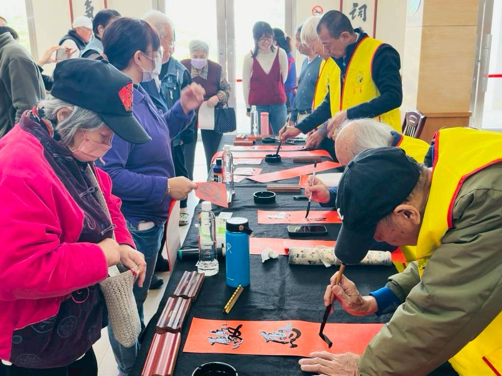 【勁報記者于郁金/花蓮報導】花蓮榮家於20日舉辦「金馬賀歲揮毫迎新春」活動,特邀請花蓮縣長青書畫會理事長湯大凰帶領林國堂、古華忠、田玉生、徐慶國、陳福堂等老師,及花蓮縣書法學會吳宗慶老師蒞現場揮毫,以筆墨傳遞祝福,為榮家住民提前送上滿滿新年好彩頭,現場洋溢濃厚年節氣息。