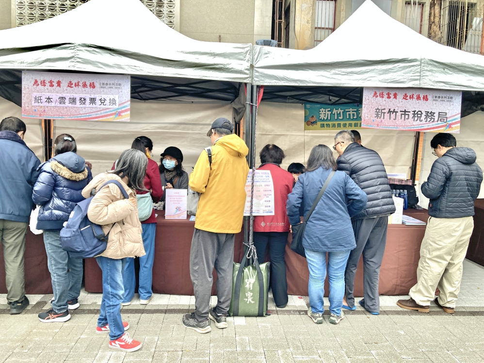 ▲竹美館2026「馬騰富貴.迎祥集福」新春揮毫活動熱鬧登場,這場活動並結合公益捐贈愛心發票,民眾冒著寒風熱情響應前往攤位捐贈發票並可兌換獎品。(圖/竹美館提供)