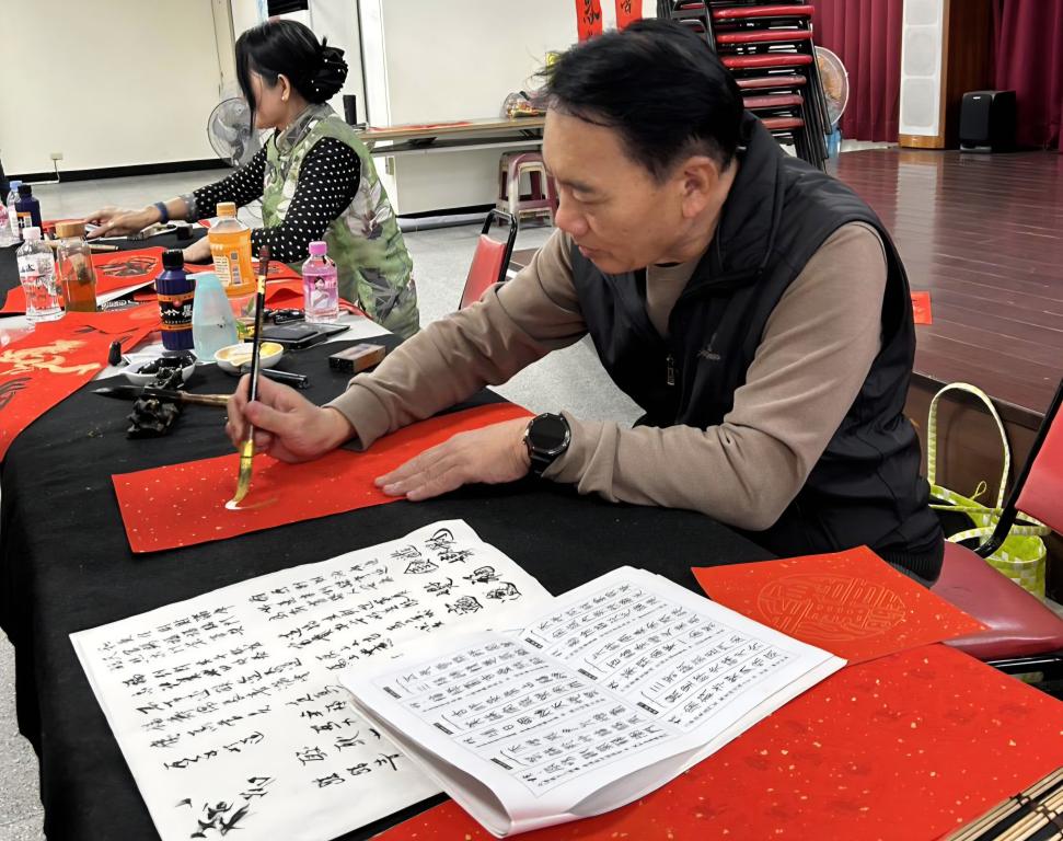 活動現場邀請書法老師有南瀛書會吳福山老師、王朝宗、省初書會陳珮琳老師親臨揮毫,現場有貼春聯習俗、規矩示範及最佳時機等。