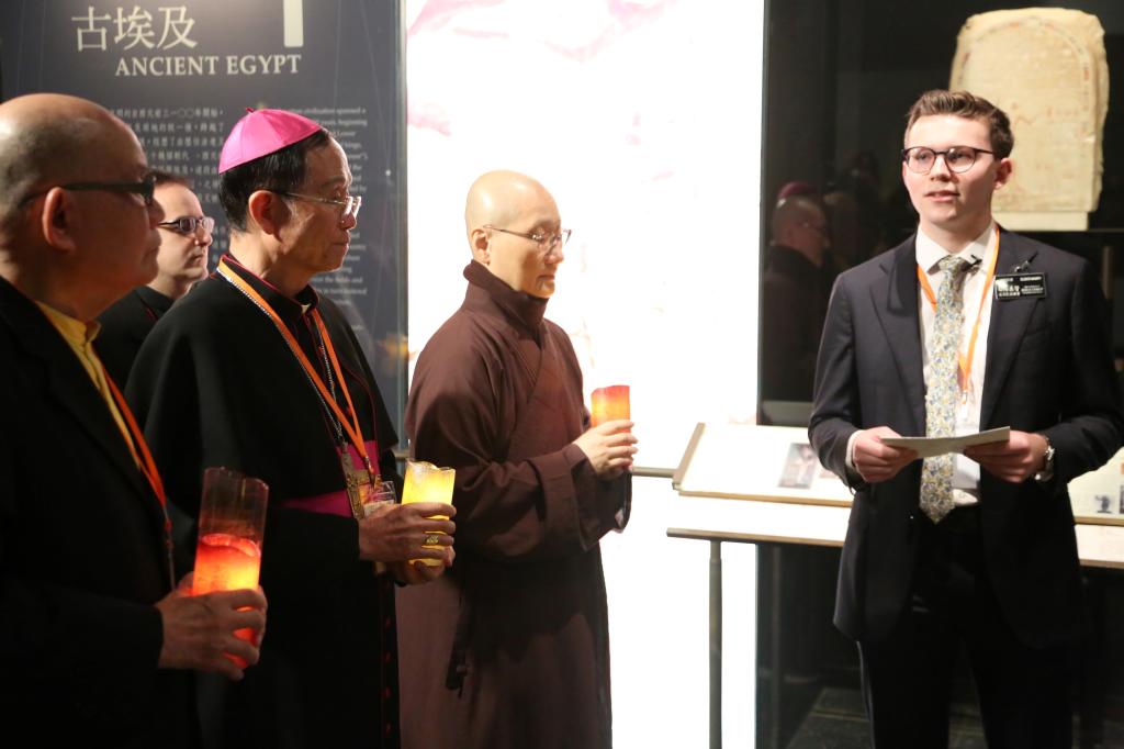 一行80餘人自宗博館知名的朝聖步道啟程,象徵人生與修行的探索之旅;沿途於世界宗教展示大廳各宗教展櫃前祝禱祈福,讚頌音聲在館內迴盪,傳遞智慧與祝福,並發表「和平宣言」,將和平從理念轉化為日常可實踐的行動,也在多元文化中看見人性共通的善與光。
