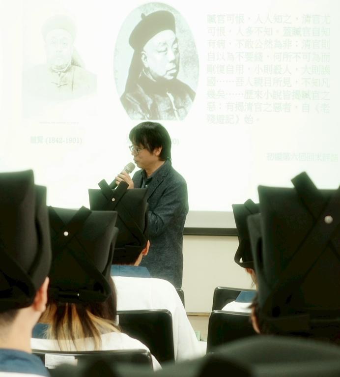 在課程設計上,成大中文系許暉林副教授以「大水過後」為題,帶領學員重讀晚清小說《老殘遊記》,並引導其思考在極端環境下,傳統綱常與現代治理衝突與調和;張俐盈副教授則透過〈綠珠怨〉文本流變,從「一首詩怎麼變成千年傳說」切入,剖析文學中版本變異如何建構集體記憶。