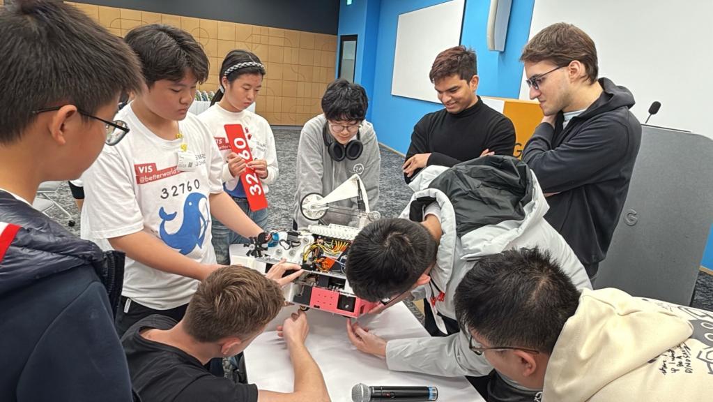2025-2026 FIRST機器人大賽、台灣選拔賽共分四分組。VIS國中部學生參加的是FTC (12-18歲):由國高中生組成,使用更具擴充性的材料打造機器人,且在較大的場地中進行聯盟對抗賽。由14位同學組成的VIS機器人研究社校隊,不僅是此次大賽中最新成軍的隊伍,參賽選手的平均年齡也是與會36個隊伍裡最小的,能以小搏大還能一舉摘銀,實屬不易!