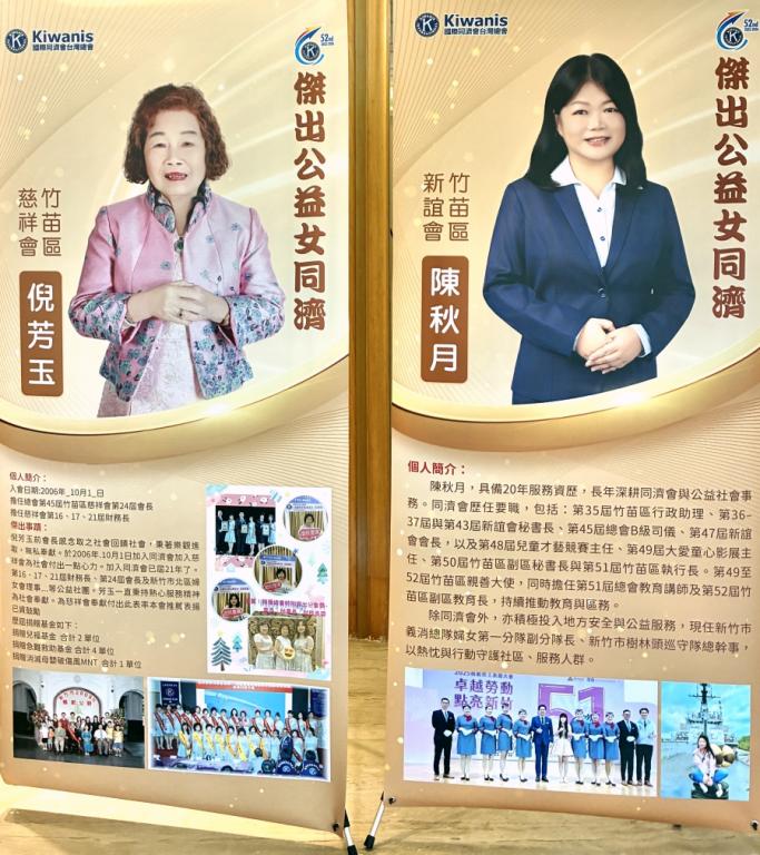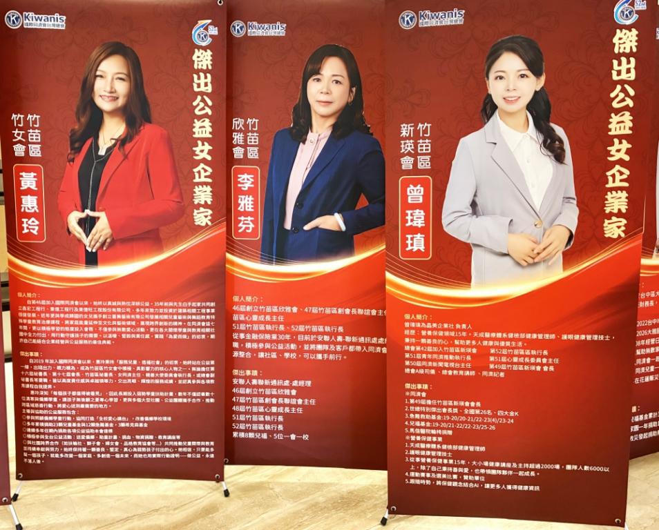 今年全國共有32位傑出公益女同濟及29位傑出公益女企業家接受表揚。獲獎者在照顧家庭、經營事業之餘,長期投入社會公益、扶助弱勢,並為同濟會組織發展做出特殊貢獻。竹苗區獲選傑出公益女同濟係新誼會陳秋月、慈祥會倪芳玉;傑出公益女企業家係新瑛會曾瑋瑱、竹女會黃惠玲、欣雅會李雅芬。