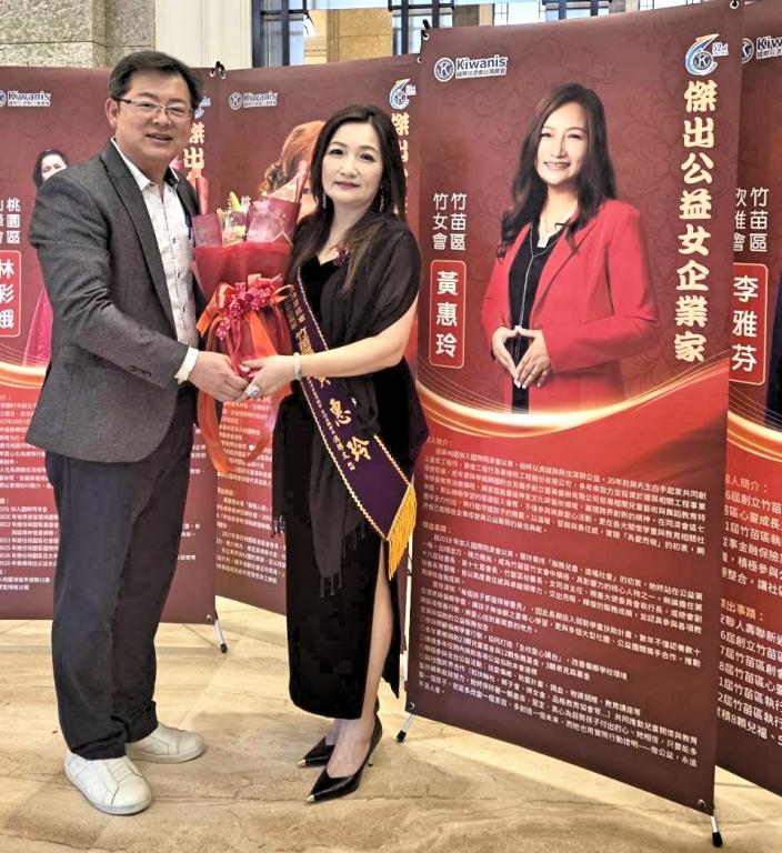 ▲國際同濟會台灣總會第52屆全國女同濟聯誼暨傑出公益女同濟、傑出公益女企業家表揚大會竹市盛大登場。竹苗區竹女會黃惠玲(右)獲選傑出公益女企業家殊榮。