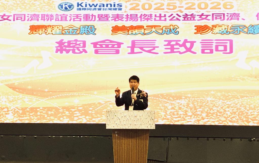 ▲國際同濟會台灣總會第52屆全國女同濟聯誼暨傑出公益女同濟、傑出公益女企業家表揚大會竹市盛大登場。國際同濟會台灣總會馮輝文致詞。