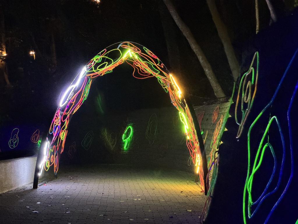 首次擔任空山祭策展人董宇茜也分享策展心得並表示,今年以「山林呼喚・大地蘊行」為策展概念,希望讓光進入龍崎山林,讓自然、土地與人的腳步在夜裡重新相遇;「當燈光在樹影間呼吸、風穿過山徑時,我們希望每一位走進山林的人,都能慢下腳步感受土地節奏」;空山祭不只是燈光展覽,更像是一段與自然同行旅程,藝術不只是被觀看,而是一種能被親身走過與感受體驗。