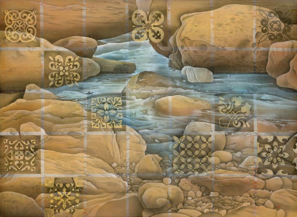 圖/「潛龍特展」呈現中山青年藝術獎、璞玉發光-璞玉獎得主吳惠淳作品《金色海岸#4》(62 x 83 cm,水墨絹本,2024)