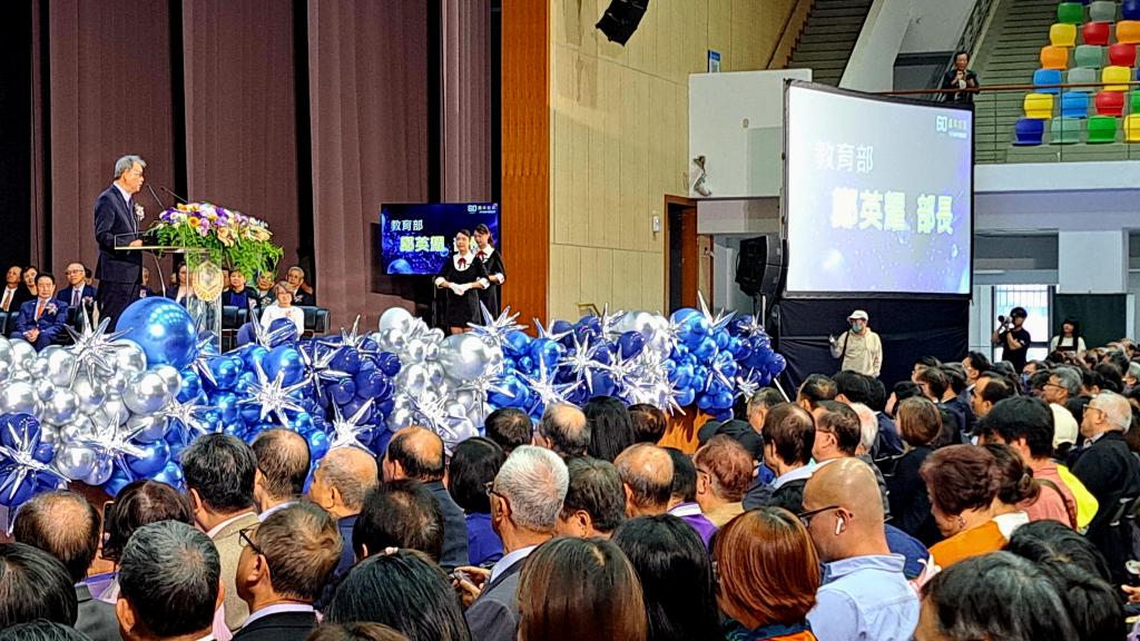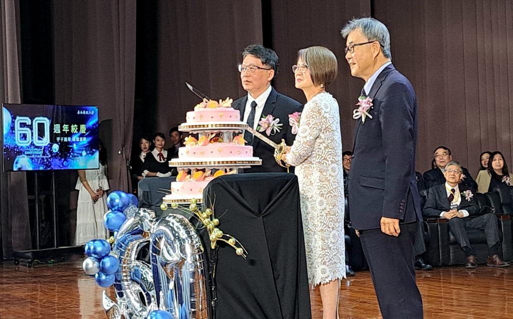 在溫馨氣氛中,教育部長鄭英耀、嘉藥董事長薛淑惠及校長張翊峰共同切下象徵傳承與祝福生日蛋糕,寓意嘉藥精神薪火相傳、生生不息。