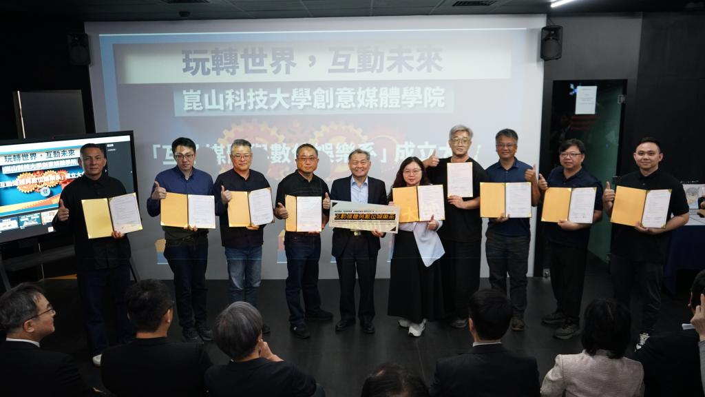 崑山科大學術副校長侯順雄教授表示,整併後的「互動媒體與數位娛樂系」正回應「技術、創意、商業」三方融合產業需求,且具備三大核心優勢,包括跨域整合教學體系、導入生成式AI與智慧應用課程,及深化產學合作實務導向培育模式;課程設計融合資訊技術、創意設計、AI應用與數位行銷,培養學生在數位技術與AI素養、創意設計與AI輔助創作、行銷與數據分析,及產業實務整合等多面向能力。