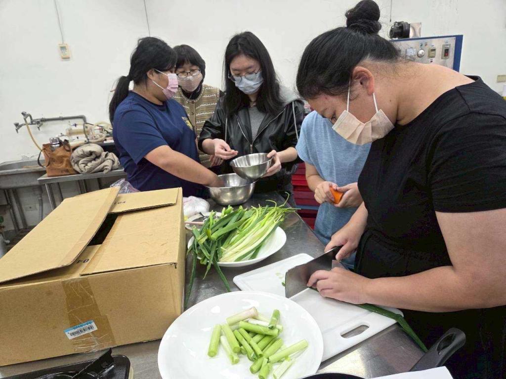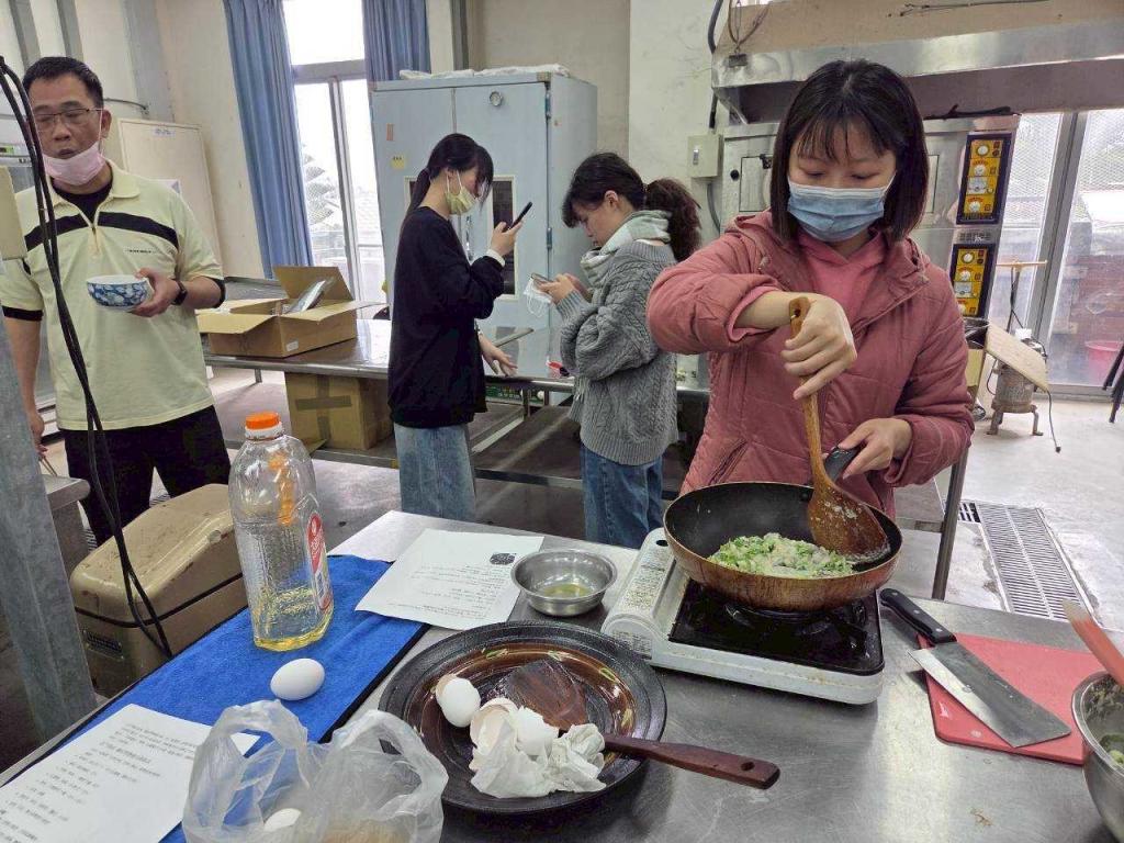 其中蚵餅製作,特別邀請到食品系教授李欣玫擔任講座,帶領學員認識在地食材、學習料理技巧,並在實際操作中培養專注力、耐心與問題解決能力。