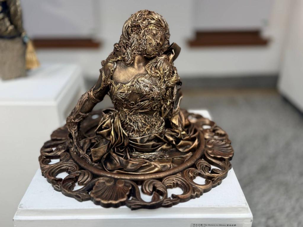 ▲玄奘大學第三人生大學文創與生活時尚專班年度成果展《生命綠洲-生活永續交響曲》於竹美館盛大開展。圖係吳珮韓展出作品 The Return to Silence重返寂靜。(圖/竹美館提供)