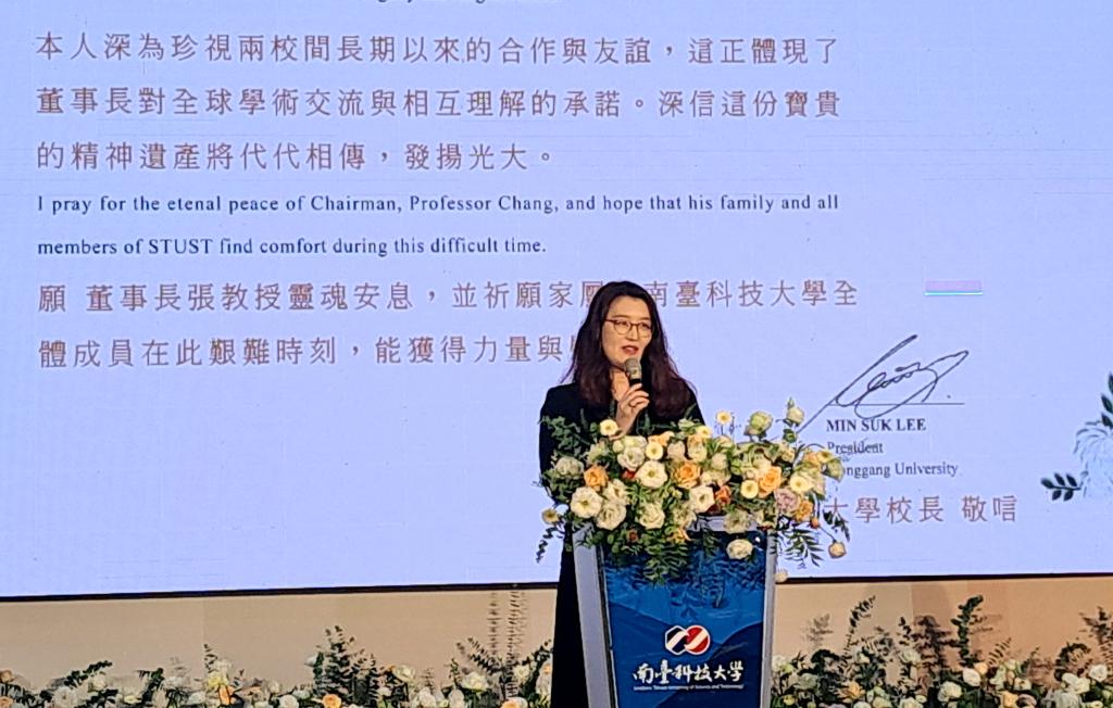 現任校長黃能富致詞感性表示,張董事長才剛於今年1月獲核定再次榮任,期盼帶領南臺邁向「國際實作型AI大學」願景;雖然哲人其萎,但他留下來「南臺魂」將持續引領南臺穩健前行。